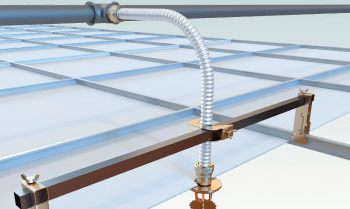Diese Befestigungsmethode eignet sich für die Montage von flexiblen Kanälen an Armstrong-Deckenschienen. Die Zahnstangenbefestigungen bieten eine solide und robuste Halterung, die eine einfache Installation und eine zuverlässige Fixierung der Kanäle ermöglicht.